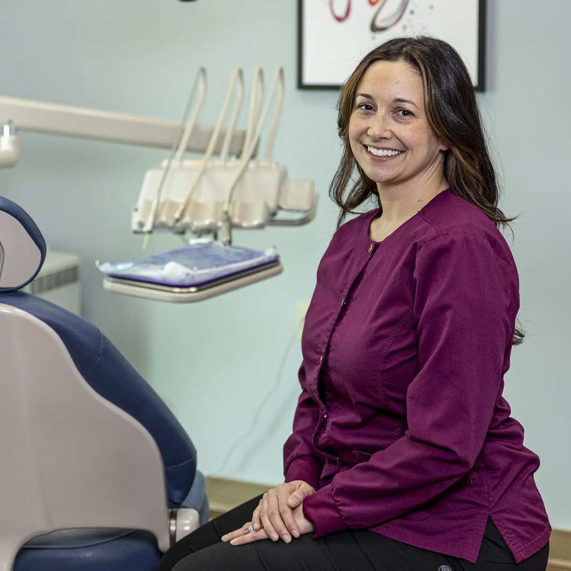 Chelsea is as “Maine” as lobster and L.L. Bean. She graduated from Lewiston High School and initially started her career working in childcare. However, she had multiple family members who were in the dental field and they encouraged her to take classes in assisting. She never looked back and has now been working in dentistry since 2008.
